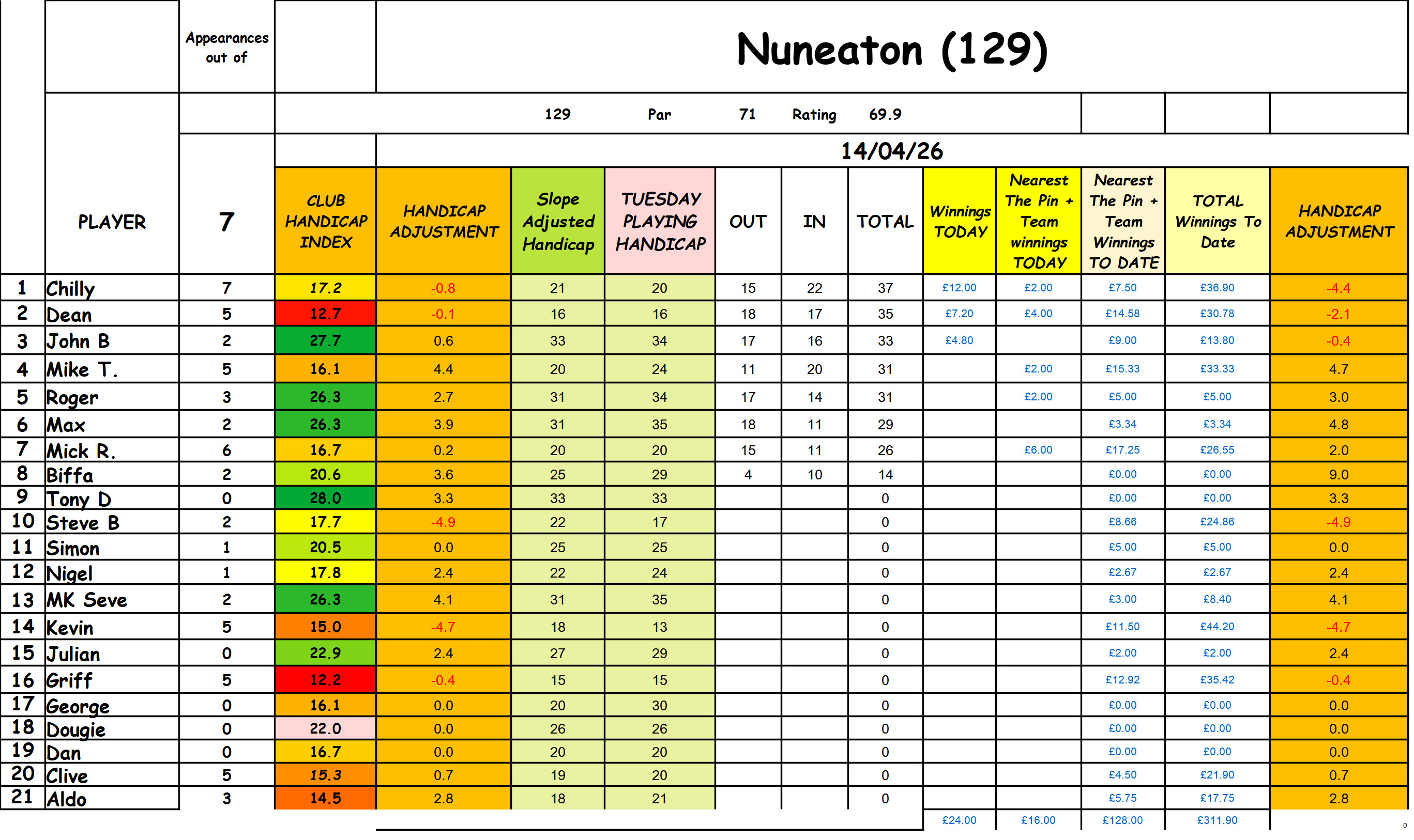 - 7-04-26 – Kibworth (130) – Taylor Triumph off 24 !!! April 9, 2026