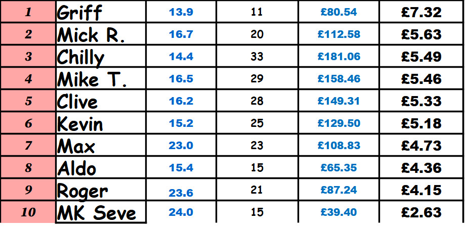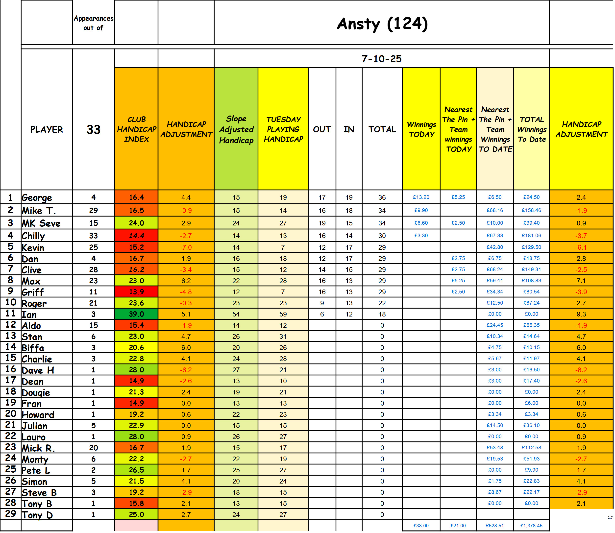 7-10-25 – Ansty (124) – George All The Way !! ROAD TO VILAMOURA 2025 TOP 10. Minimum of 10 appearances to qualify.